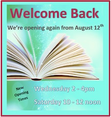 We will be operating a one- way system to allow for social distancing and the layout inside the library has been slightly changed too. Entrance to the library will be via the side gate and exit will be through the main door, just follow the signs. Books can be dropped off in the letterbox anytime or in the boxes provided when the library is open.