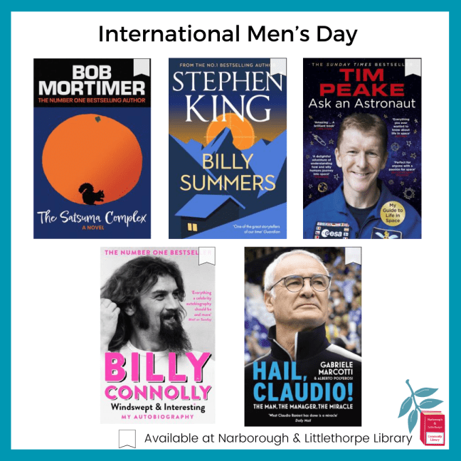 Today is International Men’s Day, here is some notable male authors at the library. In addition to those covered here we also stock a selection of the popular crime authors James Patterson, Lee Child and David Baldacci. Also our biographies section features books about sportsmen Kevin Keegan, Freddie Flintoff, Stuart Pearce and adopted Leicester hero Claudio Ranieri.