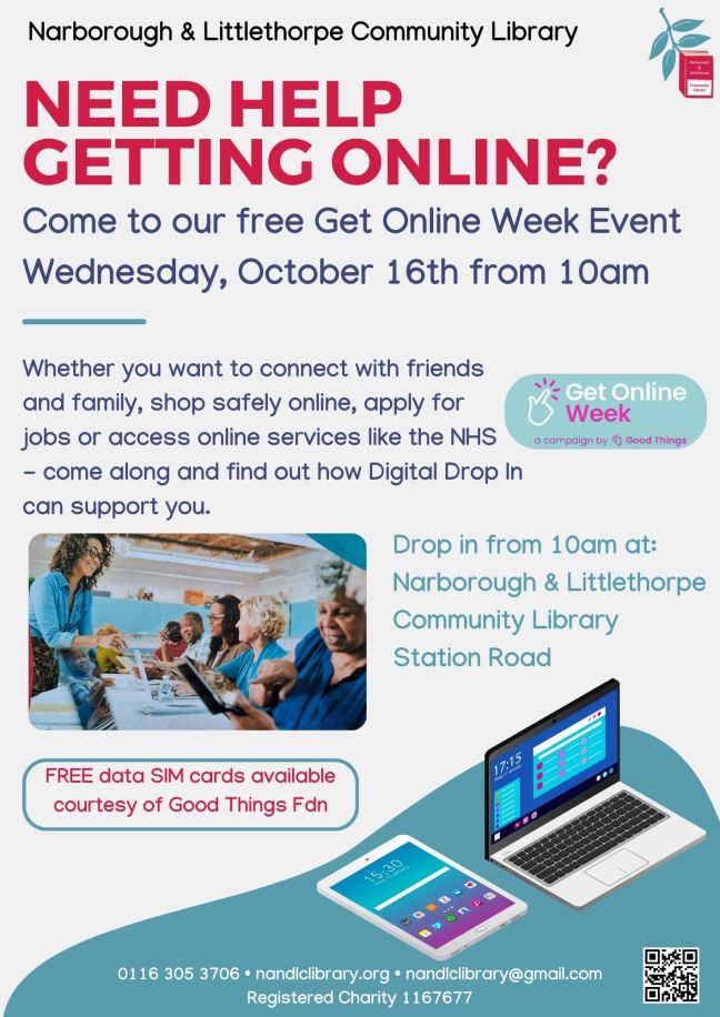 The event is on Wednesday 16th October from 10am, at Narborough and Littlethorpe Community Library.