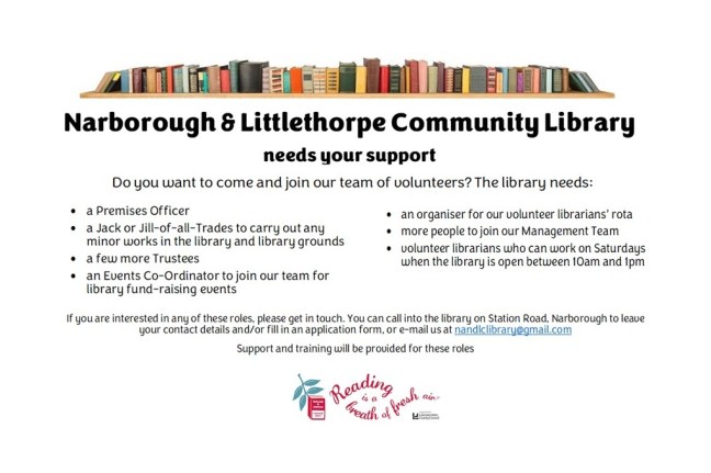 Challenge launch date/sign up event: July 1st, 10am – 1pm, at Narborough and Littlethorpe Community Library